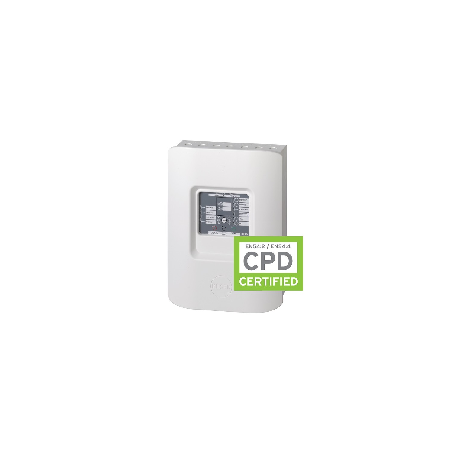 La KFP-CF2 è una centrale convenzionale di rivelazione incendio. Viene fornita nella lingua nazionale, con 2 zone che supportano fino a 20 rivelatori per linea, e dispone di 2 uscite a relè supervisionate dedicate al controllo e comando delle suonerie. Inoltre è dotata di 2 uscite, a relè a contatto pulito, riservate alle condizioni di allarme e avaria generali, e due ingressi configurabili dall'utente per il controllo e il monitoraggio.