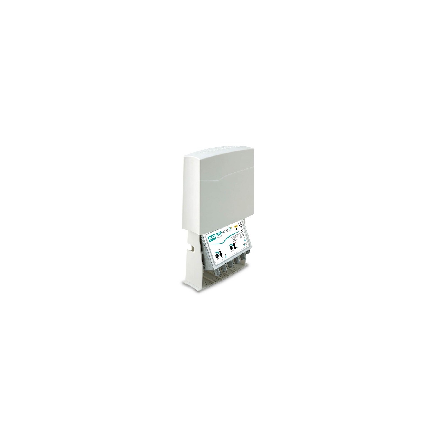 Amplificatore con 2 ingressi (III+DAB, UHF) da palo con guadagno 28dB e livello di uscita fino a 116dBµV in banda UHF, amplificazioni separate VHF/UHF, regolazioni del guadagno (0-15dB) indipendenti per ogni ingresso e bassa figura di rumore.