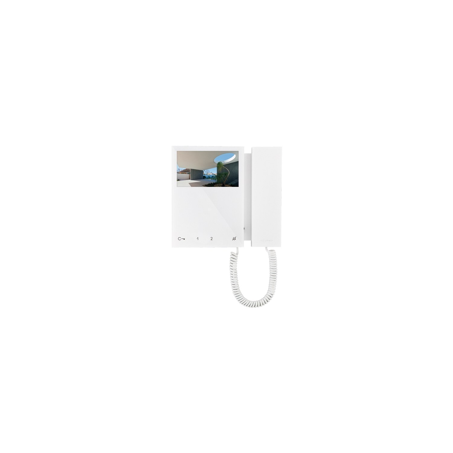 Monitor da parete con schermo colori da 4.3" / 16:9 e cornetta. Consente la regolazione della luminosità e colore e del volume suoneria che è personalizzabile scegliendo fra diverse melodie. Di serie è dotato di 4 pulsanti soft touch per la gestione dell'apriporta, dell'autoaccensione, della chiamata centralino e della funzione privacy e di led di segnalazione dello stato della porta. Gestisce di serie la chiamata fuoriporta. Completo di 2 dip-switch a 8 posizioni per la programmazione del codice utente e la programmazione dei pulsanti. Inclusi la staffa di fissaggio a muro o su scatola serie civile e il morsetto di derivazione da montante art. 1214/2C. Il monitor è utilizzabile solo su impianti 2 fili Simplebus2. Dimensioni (L x H x P): 175x160x22mm.