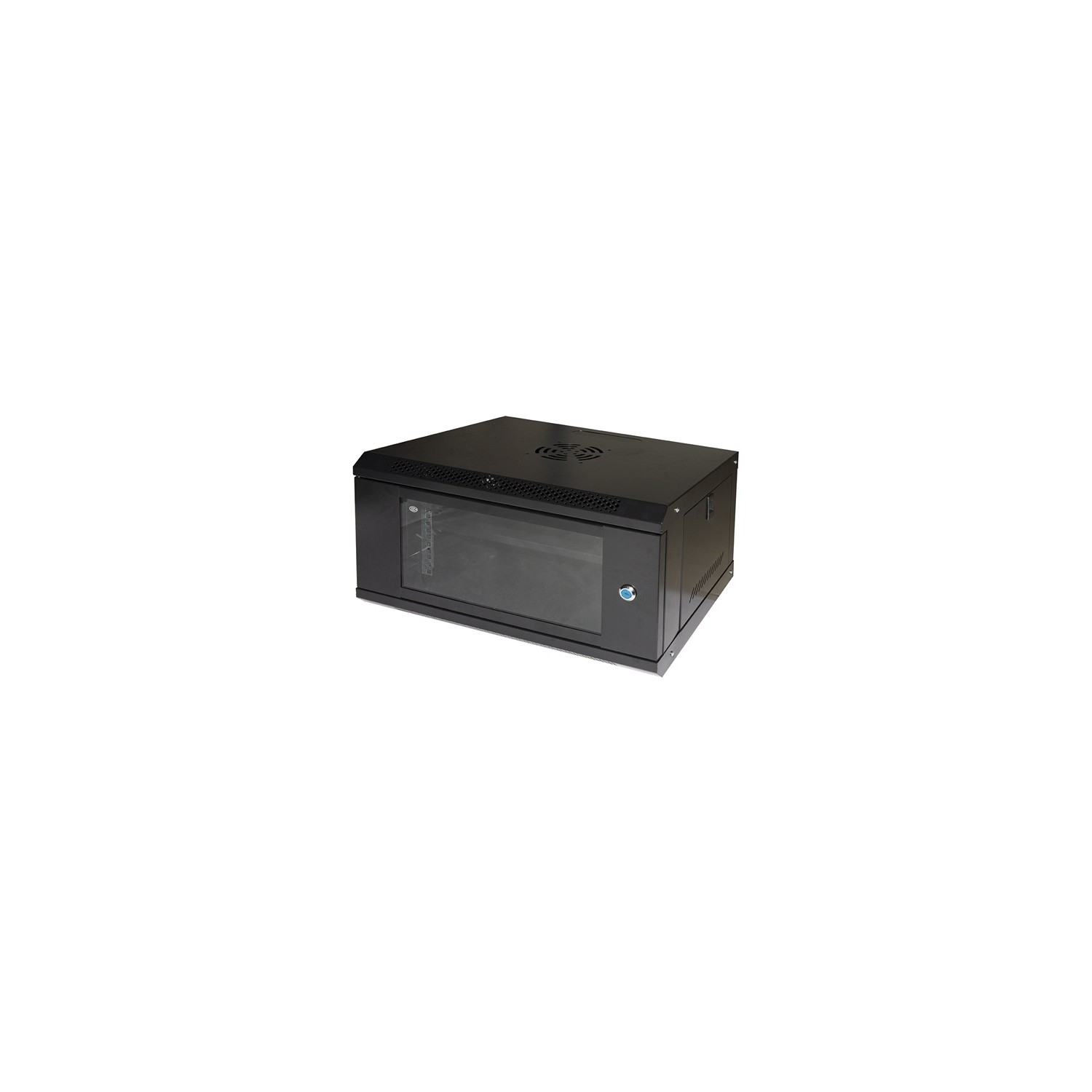 ARMADI A PARETE 19'' PER RETI Questi armadi rack 19'' per installazione a muro sono ideali per uso home e piccoli uffici, per telecomunicazioni, e per dispositivi di rete. In lamiera 0.8 mm, è un armadio rack leggero, facile da trasportare e adatto per installazione di dispositivi fino a un massimo di 30 kg.È una soluzione economica per supportare dispositivi come router, pannelli patch, multiprese.Non è adatto a per supportare gruppi di continuità o altri dispositivi pesanti.- Gli armadi vengono spediti già montati.- Fianchi laterali apribili con chiusura a scatto.- Porta frontale in vetro temprato, chiusura a chiave.La porta si può aprire di 180°, reversibile, si può installare in modo da essere aperta da entrambi i lati.- Con 4 montanti laterali verticali da 19'' regolabili in profondità.- Un ripiano incluso profondità cm 19.- Capacità di carico 30 Kg.- Feritoie sagomate per ingresso cavi dall'alto o dal basso, e da dietro.- Fori sul tetto per ventilazione passiva o installazione ventole.- Tasselli per installazione a muro non inclusi. - Colore nero RAL9005