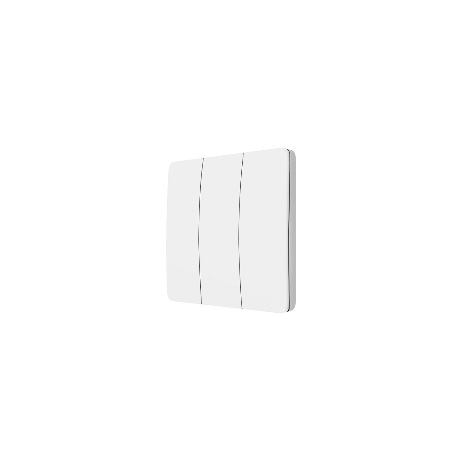 Predisposto per montaggio a parete con viti o adesivo e adatto anche per utilizzo semplicemente appoggiato su una superficie. Ciascuno dei due pulsanti può comandare un numero a piacere di attuatori.